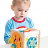 Vesela in poučna motorna kocka Le Toy Van Petilou iz naravnega lesa z barvnimi elementi spodbuja domišljijsko igro in razvoj kognitivnih spretnosti pri otrocih. Izdelana iz trajnostno pridobljenega kavčukovega lesa in pobarvana z netoksičnimi barvami, zagotavlja varno in okolju prijazno igračo.