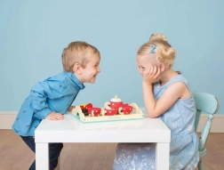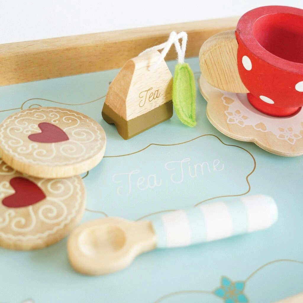 Podarite otrokom njihov prvi čajni servis iz kolekcije HONEYBAKE znamke LE TOY VAN. Set vključuje čajnik, skodelice s krožnički, žličko, čajno vrečko in piškote – vse na čvrstem pladnju, ki olajša prenašanje in postrežbo. Barvita izvedba s pikami podpira vizualno zaznavanje in vabi k igri vlog.