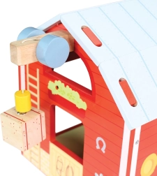 Stodola je etično izdelana iz trajnostnega lesa in pobarvana z nestrupenimi barvami na vodni osnovi. Je trdna, stabilna in pripravljena na vsakodnevno igro. Odlično jo dopolnijo figurice kmetovalcev in živali (niso priložene), s katerimi si otroci ustvarijo svojo kmetijo.
