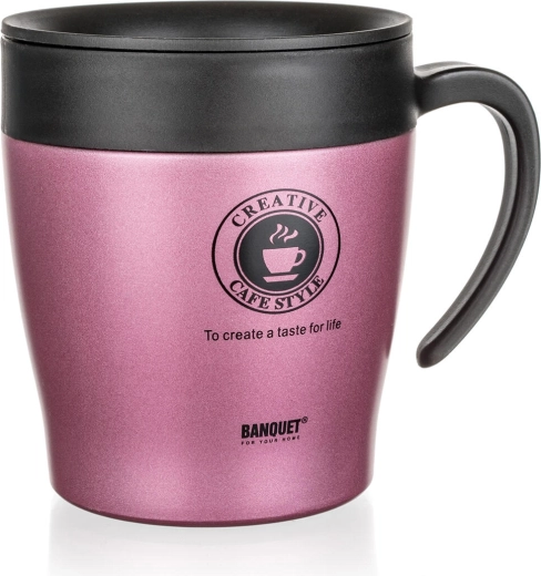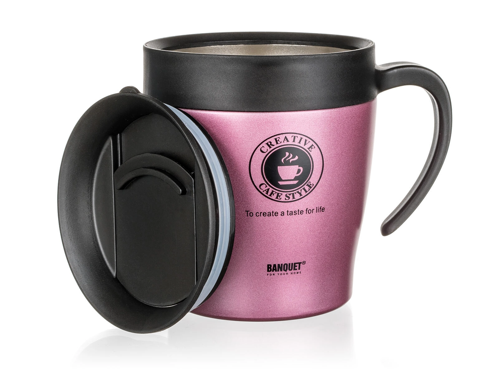 Uživajte v kavi ali čaju kjerkoli in kadarkoli. Termolonček Tazza ponuja vakuumsko dvoslojno telo za boljšo toplotno izolacijo in zanesljivo ohranjanje temperature. Zunanji plašč iz nerjavnega jekla 201 in notranjost iz kakovostnega nerjavnega jekla 304 zagotavljata odpornost, higieno in enostavno čiščenje. Rožnata kovinska obdelava doda moderen videz, ki izstopa na pisalni mizi ali v avtomobilskem držalu.