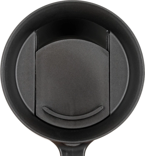Praktičen plastičen pokrov z drsnim pitnikom pomaga zmanjšati razlitje med hojo ali vožnjo. Pokrov ni 100% neprepusten – za varno uporabo priporočamo, da lonček hranite v pokončnem položaju. Zahvaljujoč udobnemu ročaju lonček dobro leži v roki in omogoča enostavno ravnanje.