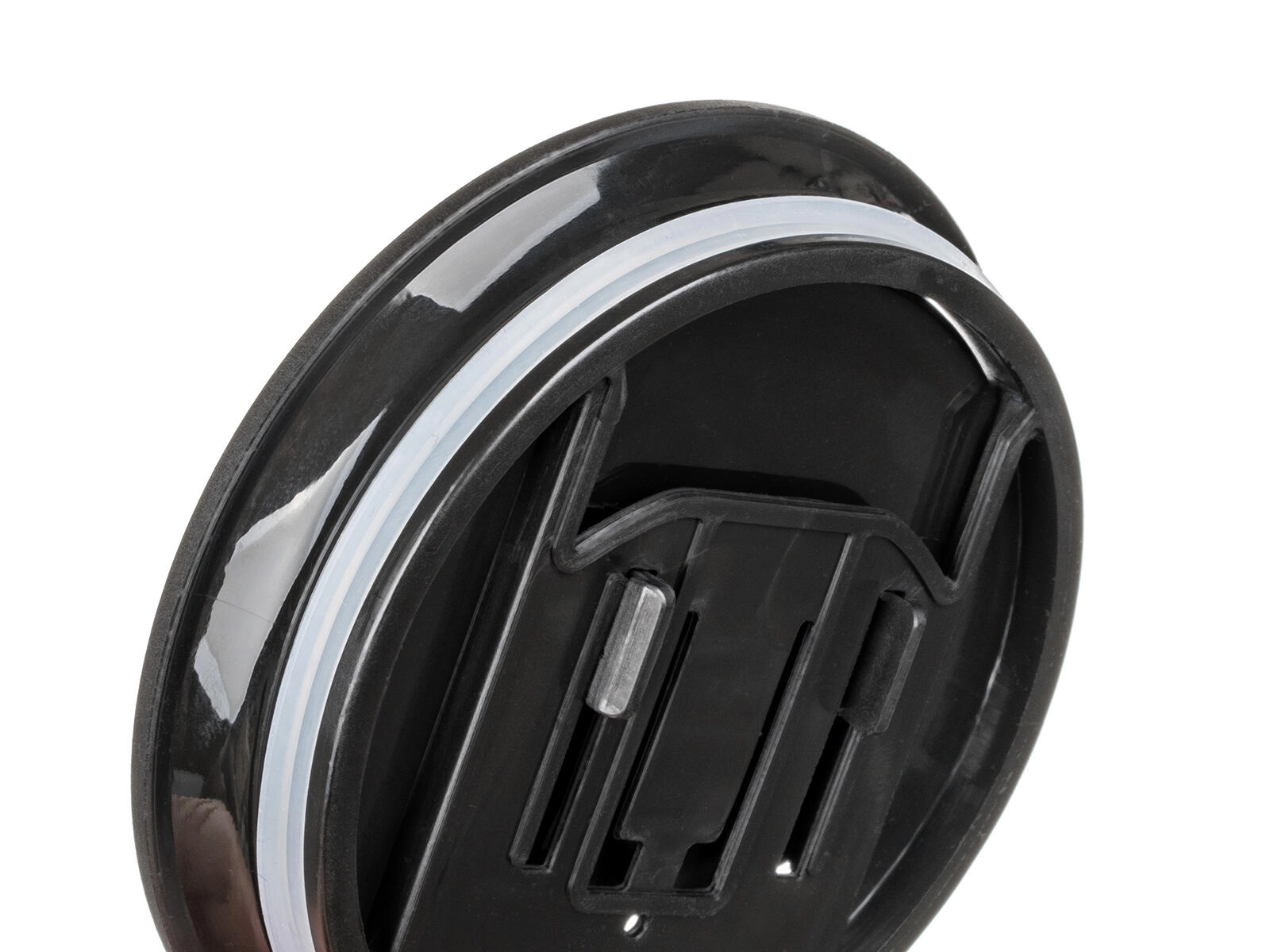 Praktičen pokrov z drsnim pitnim odprtkom zmanjšuje tveganje razlitja med hojo ali vožnjo. Za večjo varnost lonček hranite v pokončnem položaju.