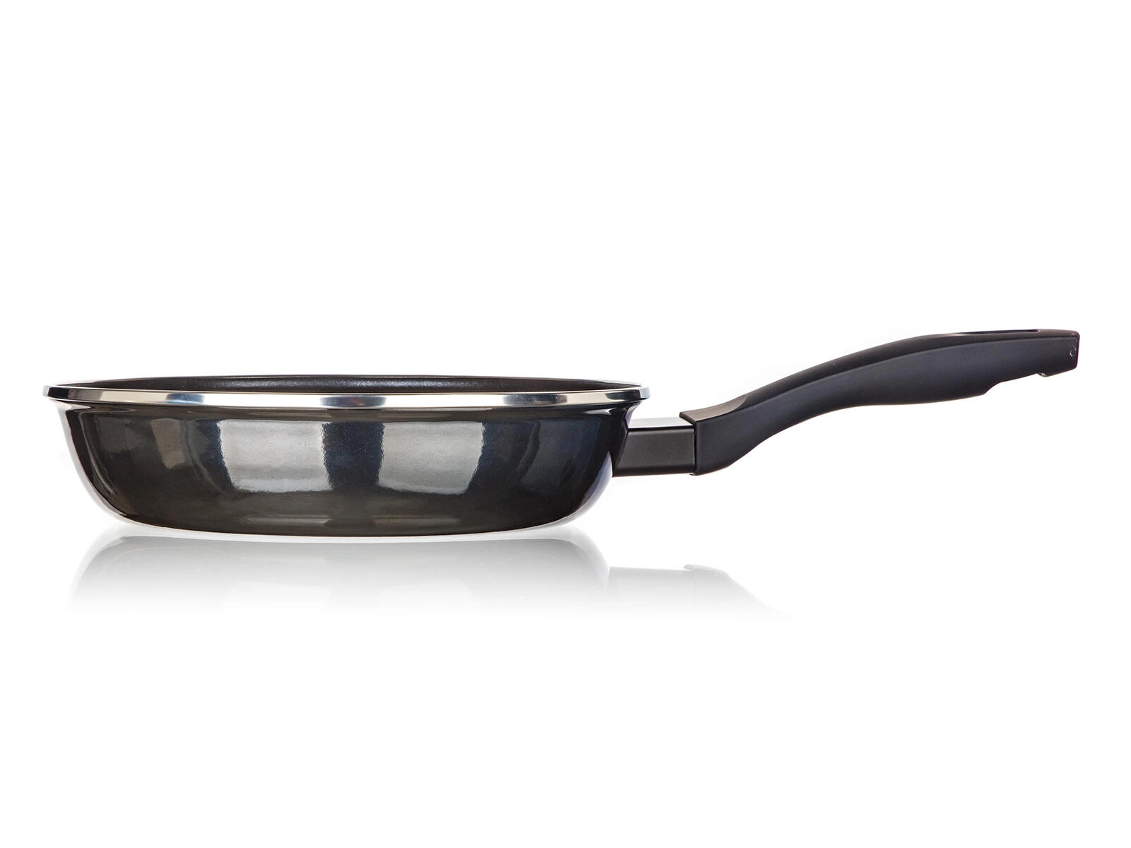 Emajl ščiti telo ponve, olajša vzdrževanje in doda eleganten videz v črni kovinski barvi.