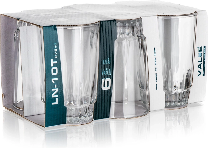 Set šestih univerzalnih kozarcev VALUE s prostornino 275 ml prinaša brezčasen videz za vsako mizo. Trdno, teksturirano dno zagotavlja odlično stabilnost in odpornost proti prevrnitvi, medtem ko gladke stene olajšajo pomivanje in vsakodnevno uporabo.