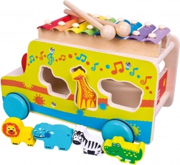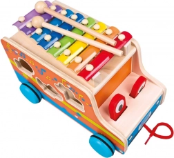 Ta pisano obarvan leseni tovornjak vas bo navdušil s svojo vsestranskostjo. Spodbuja fino motoriko in razvoj glasbenih sposobnosti zahvaljujoč vgrajenemu ksilofonu.