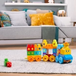 Odkrijte veselje do učenja z glasbenim vlakom s črkami MEGA BLOKS. Otroci lahko povežejo tri vagončke, naložijo barvne kocke s črkami in se ob sestavljanju vlaka igrivo učijo abecede in prvih besed. Interaktivni dimnik dodaja zabavne zvoke vlaka in veselo pesmico, ki ohranjata pozornost in spodbujata čutno zaznavanje.
