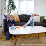Vse potrebno je v škatli: oranžne tire, izstreljevalnike, zavoje, dekorativne zastavice in 1 avtomobilček za takojšnjo igro. Robustni plastični deli prenesejo intenzivno akcijo ter razvijajo fino motoriko, koordinacijo oko–roka in kreativnost.
