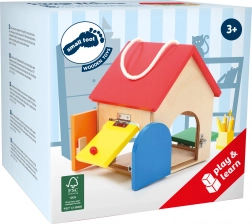 Ta kakovostna lesena hišica znamke small foot je polna interaktivnih elementov – vsaka vratca imajo drugačno vrsto zapirala, zato otroci na zabaven način urijo spretnost prstov, logično razmišljanje in potrpežljivost. Zaradi čvrste izdelave in živahnih barv je idealna za igro doma ali na poti.