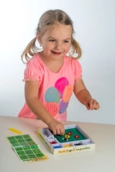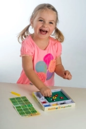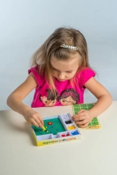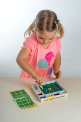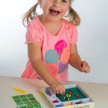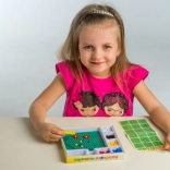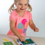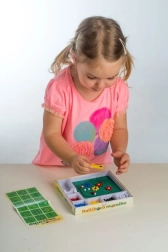 Ta mozaik je odlična izbira za prve ustvarjalne korake. Otroci s pomočjo pincete vstavljajo barvite kroglice v podlogo in ustvarjajo preproste ali domiselne motive. Aktivnost spodbuja potrpežljivost, koordinacijo oko–roka in razvoj fine motorike.
