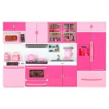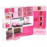 Stilska rožnato-bela kuhinjica za punčke je sestavljena iz štirih modulov z LED osvetlitvijo gorilnikov in zvočnimi efekti. Ponuja odpirajoča se vratca, mikrovalovno pečico, pečico, pomivalni stroj, hladilnik in pomivalno korito ter bogate dodatke za realistično igro kuhanja in organizacijo kuhinje.