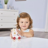 Igrača je opremljena s štirimi funkcionalnimi kolesci, ki omogočajo enostavno rokovanje in premikanje. Idealna je za razvoj grobe motorike in domišljije otrok že od 12 mesecev dalje.