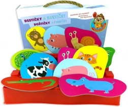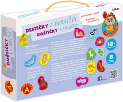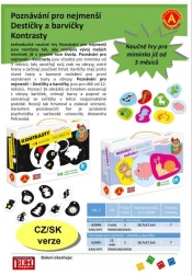 - Velike barvite ploščice s slikami, navodila v češčini in slovenščini, škatla z ročajem