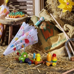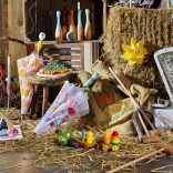 - Zabavni detajli: Ptice čivkajo in vedro s koruzo ropoče kot rumba krogla.