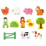 Odkrijte čar kmetije v praktični embalaži. Potovalni kovček se po razgrnitvi spremeni v pregledno igralno ploščo, na kateri bodo otroci oživili zgodbe z 12 lesenimi figuricami kmetijskih živali. Zaradi masivnega lesa so figurice trpežne, prijetne na otip in k raziskovanju vabijo s pisanimi barvami.