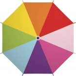 Vesela kombinacija barv izboljšuje vidnost in naredi dežnik priljubljen dodatek za vsak deževen dan.