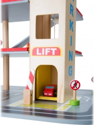 Zaradi vzdržljive lesene izdelave je igrača trajna in dolgotrajna. Dimenzije parkirišča so 35x48x38 cm in so primerne za otroke od 3 let dalje.