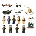 Sestavite tank, terensko vozilo, letalo, motor in topniške kose. Realistične podrobnosti in premični deli omogočajo ustvarjanje napetih bojnih scenarijev.