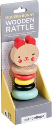 Ljubka lesena ropotulja v obliki zajčka znamke Petit Collage razveseli dojenčke z nežnim, pomirjujočim zvokom. Ima pet gladkih bukovih obročev, idealnih za majhne rokice, živahne barve in vzorce za razvoj čutov ter je izdelana iz 100 % FSC certificiranega lesa z netoksičnimi, z vodo redčljivimi barvami.