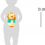 Ta mehak in barvit lev bo očaral otroke in starše. Zahvaljujoč pametni izbočeni osnovi se po rahlem dotiku prisrčno ziba levo in desno ter se spet postavi pokonci, kar otroke motivira k nadaljnjemu raziskovanju in podpira njihovo grobo in fino motoriko. Vgrajeni zvonček ustvarja prijetne zvočne dražljaje in podpira razvoj sluha.