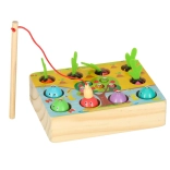Zabavna lesena montessori igra, s katero se otroci lahko doma “odpravijo na ribolov” in na vrt. Z magnetno palico lovijo ribice in črvičke, korenčke pa izvlečejo za filcaste listke. Razvija fino motoriko, koordinacijo oko–roka, potrpežljivost in natančnost, učenje barv in tipnega zaznavanja. Izdelano iz kakovostnega lesa z varno, nestrupeno barvo.