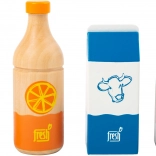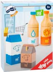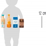 Privoščite svojim otrokom zabavno igro s štiri-delno setom pijač, ki vsebuje oranžni sok, steklenico vode, škatlo svežega mleka in malo kakava s slamico. Ta set je idealen za simulacijo kuhinjskih ali trgovskih iger.
