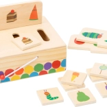 Ta kakovostna lesena igra naravno podpira razvoj otrok skozi igro. Barvite lesene ploščice se vstavljajo v ustrezne odprtine v pokrovu, otrok pa pri tem vadi razvrščanje po obliki in barvi, koordinacijo oko–roka ter potrpežljivost. Zaradi kompaktnih mer je škatlica odlična spremljevalka doma in na poti.