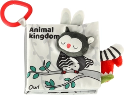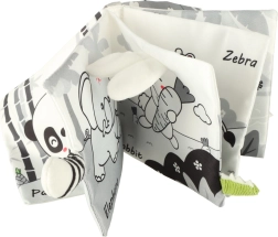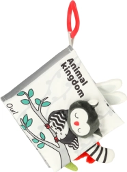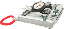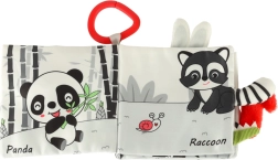 S to mehko knjižico v kontrastnih barvah se bo vaš malček podal v odkrivanje sveta živalic – od sove, opičke in pande do rakuna, slona, krokodila ali zebre. Črno-beli in rdeči elementi podpirajo zgodnjo vizualno stimulacijo, medtem ko različne teksture in interaktivni elementi razvijajo fino motoriko ter koordinacijo oko–roka. Vsaka stran vsebuje angleška imena živali, kar naravno podpira tudi prvo besedišče.