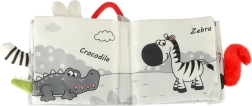 Knjižica je lahka, kompaktna in jo po zaslugi obešalnega obročka zlahka pritrdite na voziček, avtosedež ali posteljico. Šumenje, ropotuljica in piskalica prebujajo radovednost ter spodbujajo prijemanje, stiskanje in listanje – torej dejavnosti, ki podpirajo senzorični razvoj in samostojno igro tudi na poti.