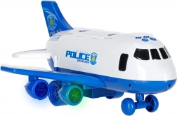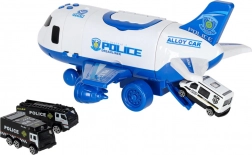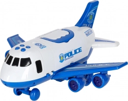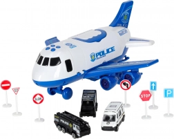 Veliko policijsko transportno letalo za male junake prepelje celotno posadko in vozila naravnost na mesto akcije. Ponuja odpirajoč se stranski panel, zadnjo nakladalno rampo, luči in zvoke ter v notranjosti prostor za 3 policijske avtomobile in 7 prometnih znakov. Odlična igrača za kreativno igro vlog in učenje prometnih pravil.