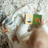 Leseno grizalo, muslin/bombažni robček, kartonsko leporelo