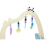 Prebudite čute svojega dojenčka s tem čudovitim lesenim igralnim lokom Vilac. Izdelan je iz naravnega lesa z barvitimi elementi, med katerimi so kroglice, zvonček in druge viseče igračke; odličen je za senzorično zaznavanje in razvoj motoričnih spretnosti. Stabilna konstrukcija zagotavlja varno uporabo.