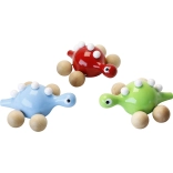 Uživajte v zabavi z lesenim dinozavrom na kolescih znamke Vilac. Ta prikupni dinozaver je pobarvan v zeleno in okrašen z belimi izrastki na hrbtu. Zahvaljujoč lesenim kolescem lahko vaš mali raziskovalec z dinozavrom zlahka vozi po hiši ali na prostem.