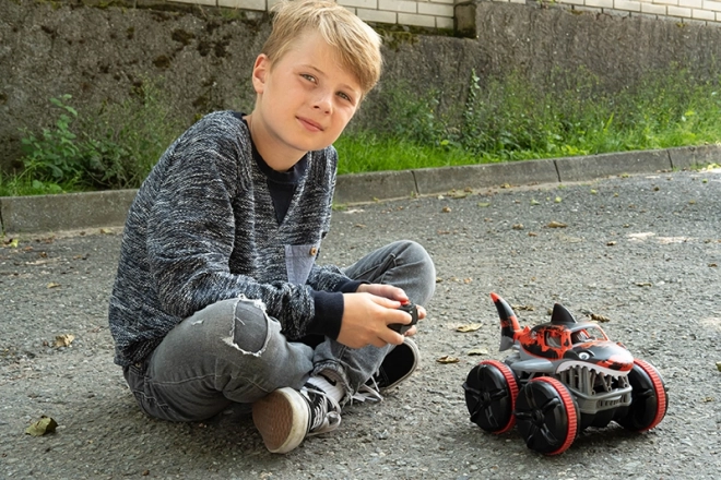 Avto je opremljen s frekvenco 2,4 GHz, kar zagotavlja zanesljiv nadzor in upravljanje. Sposoben je plezati do 45 stopinj in ponuja razburljive rotacije 360 stopinj na mestu. Zadnja plavut se elegantno premika med vožnjo po vodi, kar daje iluzijo plavajočega morskega psa.