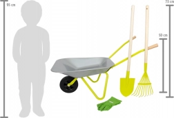 Idealni komplet za majhne vrtnarje! Ta otroški samokolnik ima prostornino približno 10 litrov in je opremljen z bombažnimi rokavicami, lopato in grabljami, ki otrokom omogočajo enostavno pomoč pri delu na vrtu.
