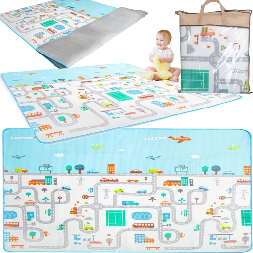 Velika penasta igralna podloga z dizajnom mesta, idealna za otroško sobo, izolira od mraza in blaži padce, varna in enostavna za čiščenje.