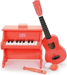 Otroška kitara VILAC v živahno oranžni barvi je idealna za prve glasbene korake. Ponuja kakovostno izdelavo, 6 najlonskih strun in dodatke v obliki rezervne strune in trzalice. Odlično za razvoj ljubezni do glasbe in ritma pri otrocih od 3 let. Opozorilo: gre za posnetek, ne za polno vreden glasbeni instrument.