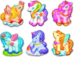Ustvarite in pobarvajte bleščeče mavčne magnetke za hladilnik ali broške v obliki 6 prikupnih samorogov. Idealen za razvoj ustvarjalnosti otrok.