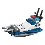 Uživajte v obilici zabave z gradbenim kompletom, ki navdihuje k ustvarjanju in predelavam. Iz kompaktnega kompleta 28 delov zgradite kar tri različne modele – od hitrega čolna do spremljevalne ladje s podrobnostmi, kot so antene ali luči. Majhne dimenzije pakiranja so idealne za na pot, zabava pa se lahko začne kjerkoli.