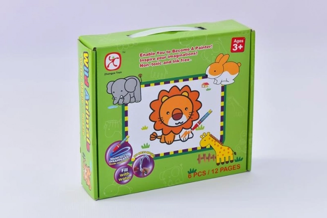 S priloženim flomastrom, napolnjenim z vodo, otroci preprosto pobarvajo bele površine na sliki in opazujejo, kako se barve čarobno pojavijo. Po sušenju se vse vrne v prvotno stanje in zabava se lahko začne znova.