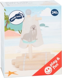 Odkrijte zabavo na valovih z lesenim splavom small foot, ki je kot ustvarjen za male mornarje. Zahvaljujoč naravnim materialom, robustni izdelavi in tekstilnemu jadru z veselým motivom mroža bodo otroci uživali ure igre ob vsakem kopanju. Igrača je primerna za kad, lavor, bazen in mirne naravne vode – dovolj je, da jo položite na vodo in pustite, da pluje.