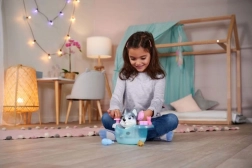 Kužek Husky ima interaktivno funkcijo pitja in lulanja, kar otroke nauči skrbi za domače ljubljenčke in doda igri dodatno dimenzijo.