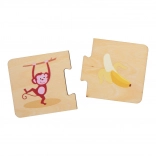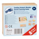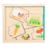 Učite se in zabavajte se s to leseno logično igro, ki bo vašega otroka naučila, katera žival kaj je. Sestavljanka, spomin in igra za ujemanje v enem paketu.
