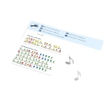Del pakiranja so notni zapisi z barvnimi oznakami in priljubljenimi otroškimi pesmimi za hiter začetek.