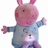 Prisrčen uspavalček Pujsa Pepa v modri pižamici pomaga otrokom mirno zaspati zahvaljujoč uspavanki in prijetni nočni lučki. Glasba igra do 15 minut, svetloba sveti 30 minut, nato se vse samodejno izklopi. Mehka plišasta izdelava in idealna višina 25 cm za objem pred spanjem.