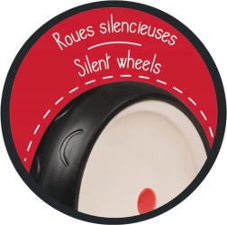 Ta poganjalec ima vzdržljiv kovinski okvir, kar zagotavlja dolgo življenjsko dobo. Zahvaljujoč 4 tihim kolesom je zelo stabilen in tih med uporabo. Udoben sedež in plastična košarica sta idealna za prevoz drobnarij. Opremljen je z omejenim kotom krmiljenja za največjo varnost in stabilnost. Praktičen ročaj pod sedežem olajša prenašanje, ko je poganjalec treba prestaviti.