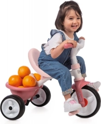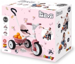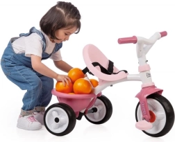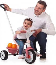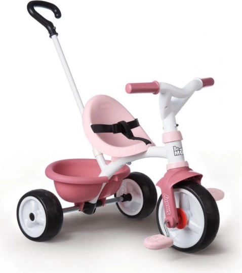 Roza otroška tricikel Be Move prinaša veselje z vožnjo malim damam. Ta model je opremljen s kovinskim okvirjem za maksimalno stabilnost in nastavljivo vodilno palico, ki ponuja tri višinske ravni, do višine 95 cm.