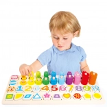S pomočjo barvnih oblik in številk igrača spodbuja učenje osnov štetja in prepoznavanje oblik.