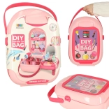 Kozmetični set v prenosnem kovčku za male frajle in bodoče frizerje prinaša veliko dodatkov za ustvarjalno igro: sušilnik za lase, glavniček, ogledalce, sponke, prstančke, zapestnice ter barvne stekleničke. Kovček ima prozorno okence za personalizacijo – vstavite sliko ali ime otroka in ustvarite edinstven komplet za igro vlog. Odličen za razvoj fine motorike in socialnih veščin. Ne vsebuje prave kozmetike.