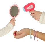 Otroški plastični sušilnik za lase in prikupno ogledalce spodbujata domišljijo in dodajata igri avtentičen občutek – varno in brez prave kozmetike.