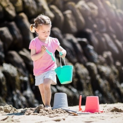 Gradnja gradov, prenašanje vode ali pomoč na vrtu – eno vedro, nešteto možnosti za ustvarjalno igro doma in na poti.
